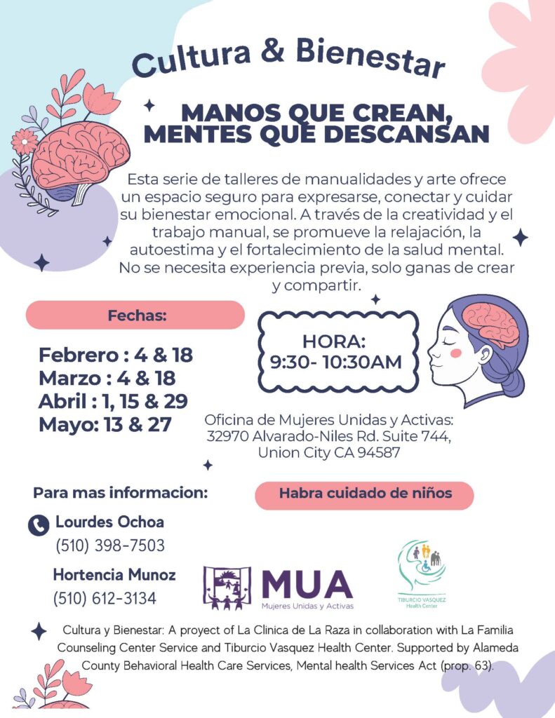 Esta serie de talleres de manualidades y arte ofrece un espacio seguro para expresarse, conectar y cuidar su bienestar emocional. A través de la creatividad y el trabajo manual, se promueve la relajación, la autoestima y el fortalecimiento de la salud mental. No se necesita experiencia previa, solo ganas de crear y compartir.