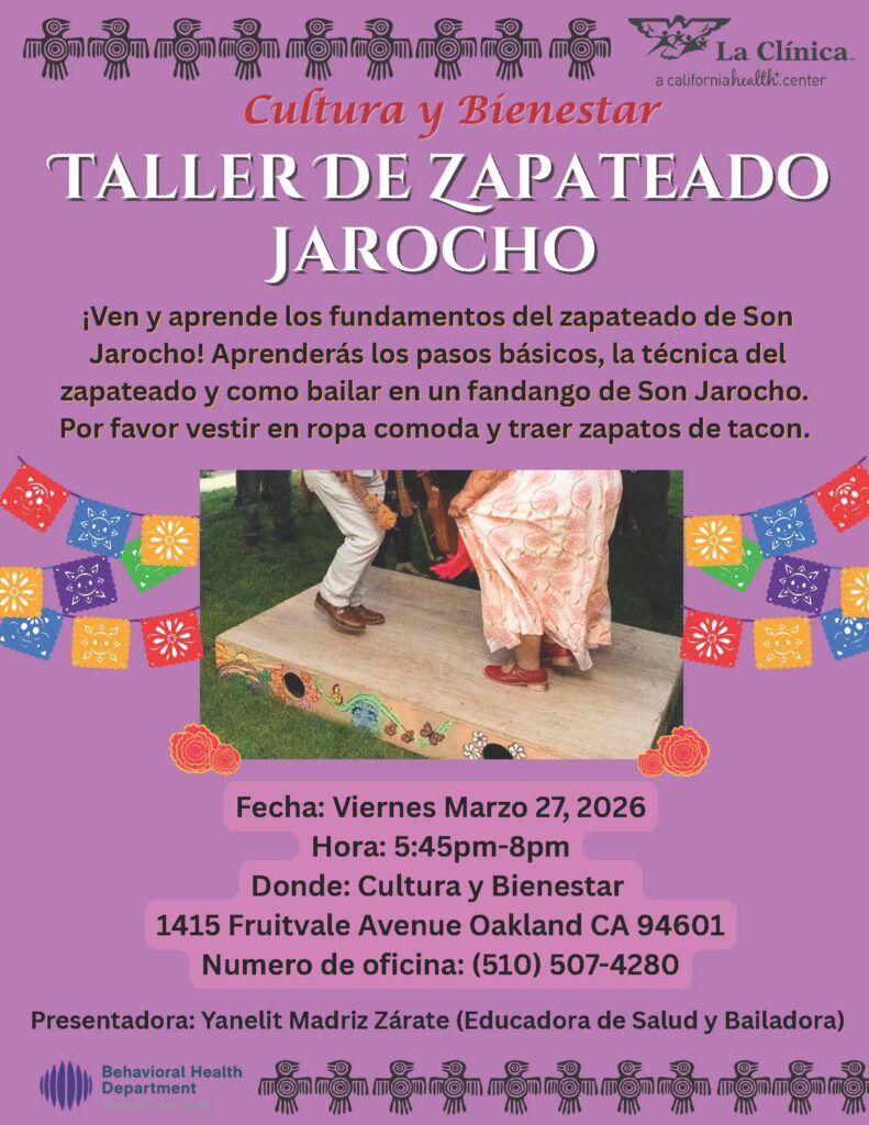 Ven y aprende los fundamentos del zapateado de Son Jarocho! Aprenderás los pasos básicos, la técnica del zapateado y cómo bailar en un fandango de Son Jarocho. Por favor vestir con ropa cómoda y traer zapatos de tacón.